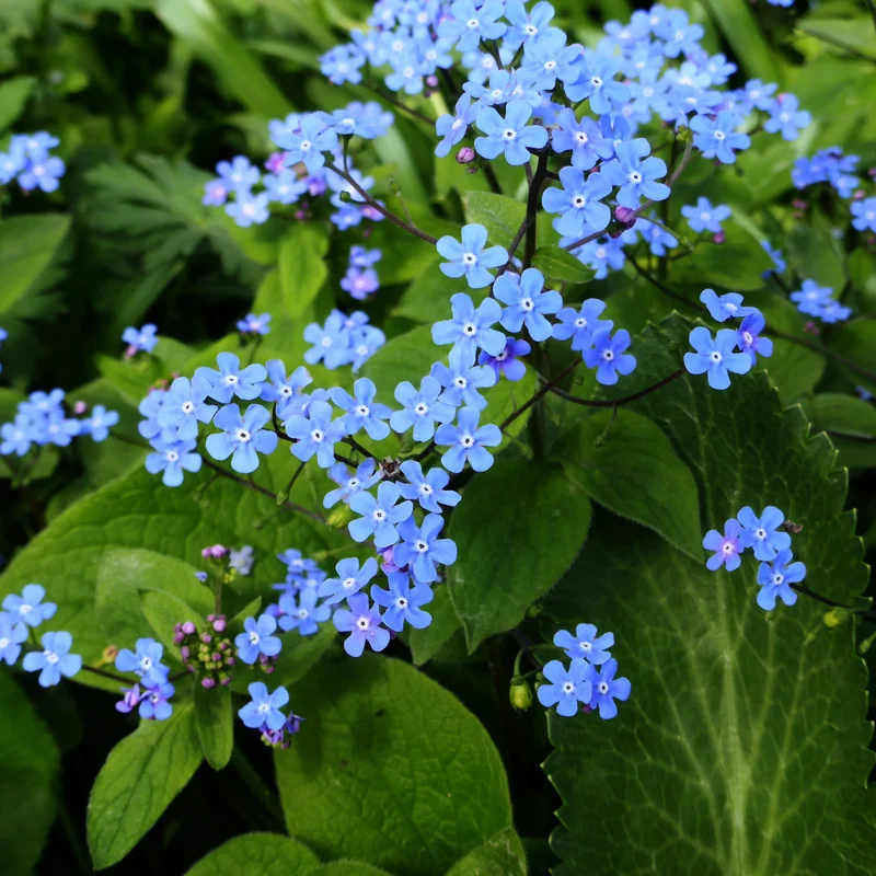 Celebrated for its delicate, forget-me-not-like blue flowers and heart-shaped leaves. An ideal ground cover for shady areas, providing a splash of color in spring.