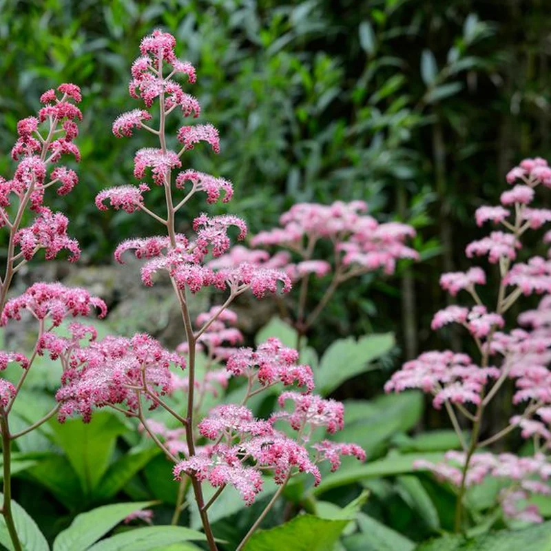 Notable for its large, palmate leaves and plumes of creamy flowers. A striking choice for adding bold texture to damp, shady areas.